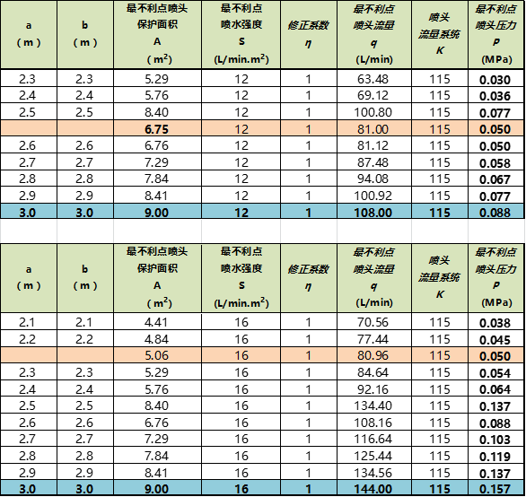 如P初算 ≤ 0.05MPa,则最不利点喷头工作压力 P=0.05MPa